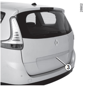 Carte RENAULT dans la zone 1, passez la main derrière une poignée 2 : le véhicule se déverrouille (dans certains cas, il faut tirer deux fois la poignée 2 pour déverrouiller le véhicule et ouvrir la porte).